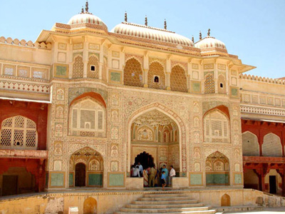 Amber- The stunning fort is the famous fort of Jaipur. It was built by Maharaja Mansingh. It displays a unique blend of Rajasthani and Mughal architcture. The fort features a lake which reflects its many terraces and pavilions. Amber is also known for the spectacular Sheesh Mahal, Jai Mandir, Diwan-i-Am, Sikh Niwas and the small Kali Temple.